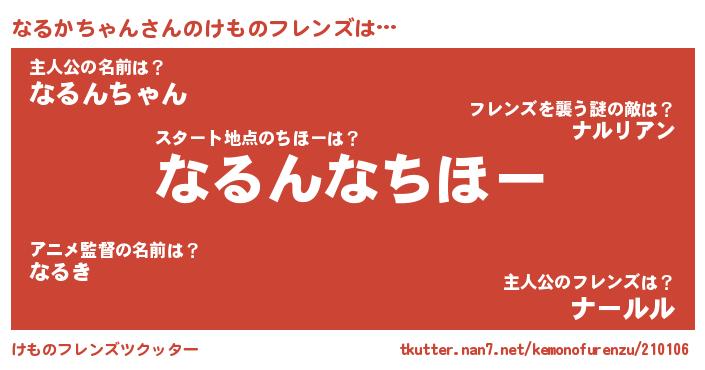 | 2回繰り返すあだ名 | 『ななるる』『だるんだるん』 |