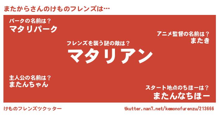 | ヒーロー風カッコイイあだ名 | 『仮面マタダー』『友情の使者またから』 |