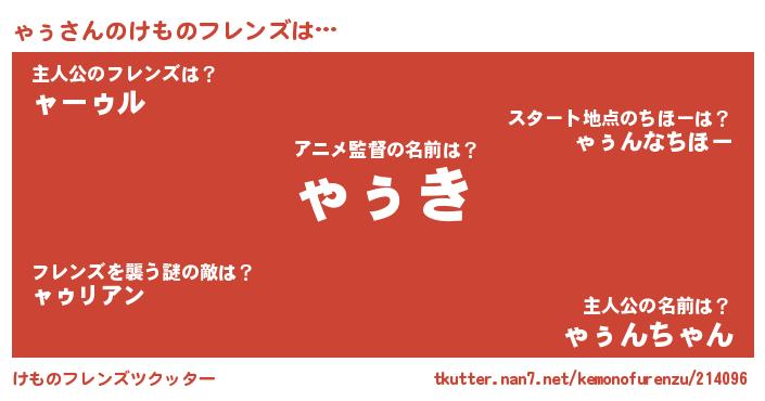 | 意味不明あだ名 | 『とにかく怪しいゃぅ』『永久保存ゃぅ』 |