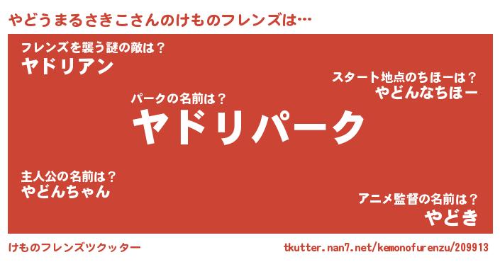 | 男性向けラノベタイトル風あだ名 | 『Re:やどうまるさきこから始める異世界生活』 |