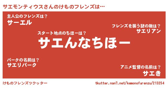 | 男性向けラノベタイトル風あだ名 | 『サエモンティウスに滅ぼされるだけの簡単なお仕事です』 |