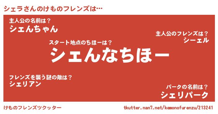 | 料理風あだ名 | 『栗とシェラのマフィン』『シェラごはん』 |