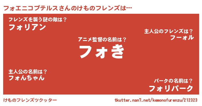 | ヘコむあだ名 | 『フォぷりん』『フォエニコプテルス(笑)』 |