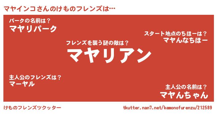 | 男性向けラノベタイトル風あだ名 | 『おまえをオタクにしてやるから、俺をマヤインコにしてくれ! 』 |