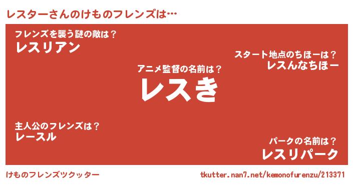 | 意味不明あだ名 | 『めかぶ科レスター属』『自称レスター』 |