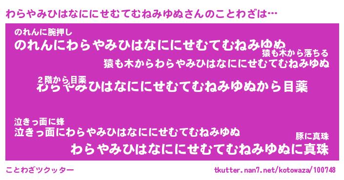 | ツイッター | わらやみひはなににせむてむねみゆぬさんのツイッターID『katatsumuri_idle』 |