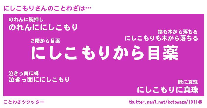 | 胡散臭い通販商品みたいなあだ名 | 『億万長者になれるブレスレット…その名も「にしこもり」』 |