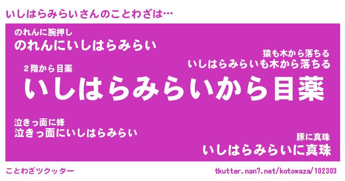 | 胡散臭い通販商品みたいなあだ名 | 『億万長者になれる水晶球…その名も「いしはらみらい」』 |