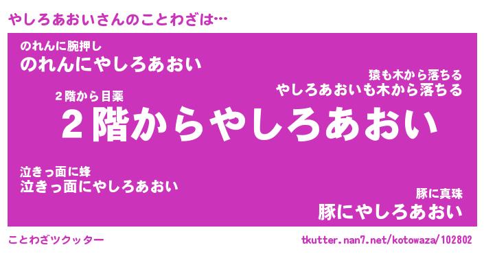 | ヘコむあだ名 | 『やしにゅー』『酢こんぶ』『やしを』 |