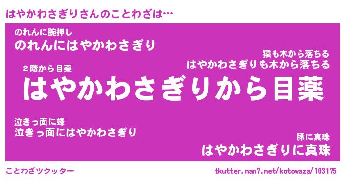 | 胡散臭い通販商品みたいなあだ名 | 『億万長者になれる水晶球…その名も「はやかわさぎり」』 |