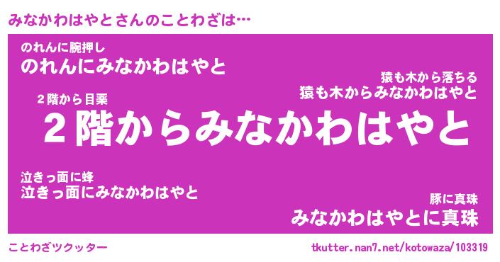 | ヘコむあだ名 | 『みなにゅー』『豆乳』『みなっ子』 |