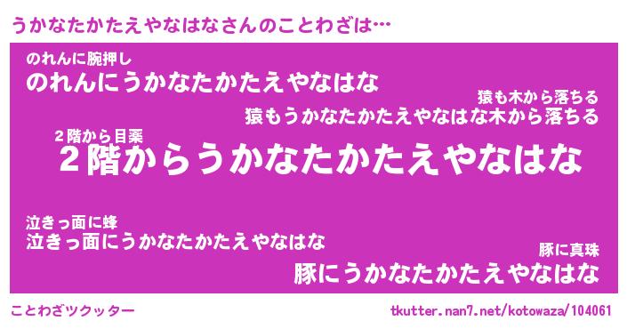 | 男性向けラノベタイトル風あだ名 | 『うかなたかたえやなはなの憂鬱』 |