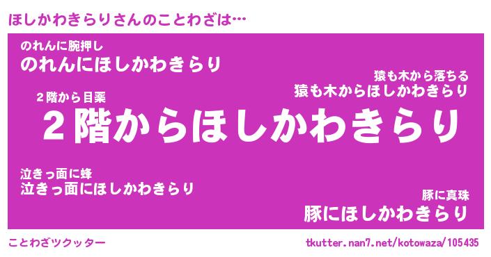 | 胡散臭い通販商品みたいなあだ名 | 『必ず成功するブレスレット…その名も「ほしかわきらり」』 |