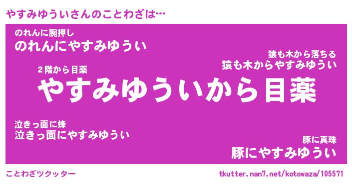 | 胡散臭い通販商品みたいなあだ名 | 『億万長者になれるブレスレット…その名も「やすみゆうい」』 |