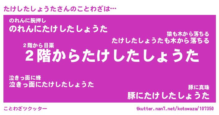 | ヘコむあだ名 | 『たけもー』『なまこ酢』『たけっ子』 |