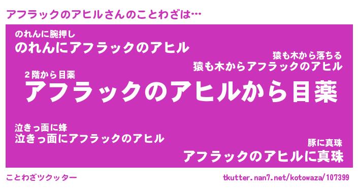 | 胡散臭い通販商品みたいなあだ名 | 『モテモテ間違いなし霊験あらたかなお札…その名も「アフラックのアヒル」』 |