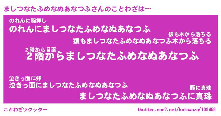 | 胡散臭い通販商品みたいなあだ名 | 『必ず成功する霊験あらたかなお札…その名も「ましつなたふめなぬあなつふ」』 |