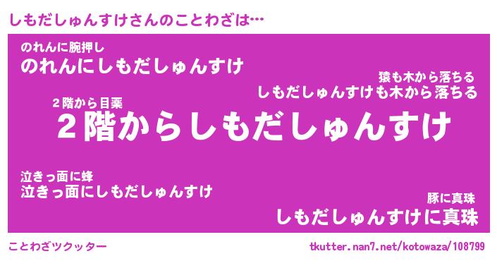 | 男性向けラノベタイトル風あだ名 | 『しもだしゅんすけの憂鬱』 |