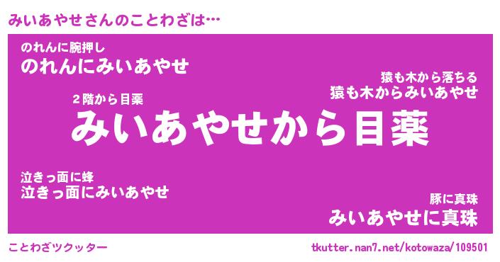 | 胡散臭い通販商品みたいなあだ名 | 『億万長者になれる霊験あらたかなお札…その名も「みいあやせ」』 |