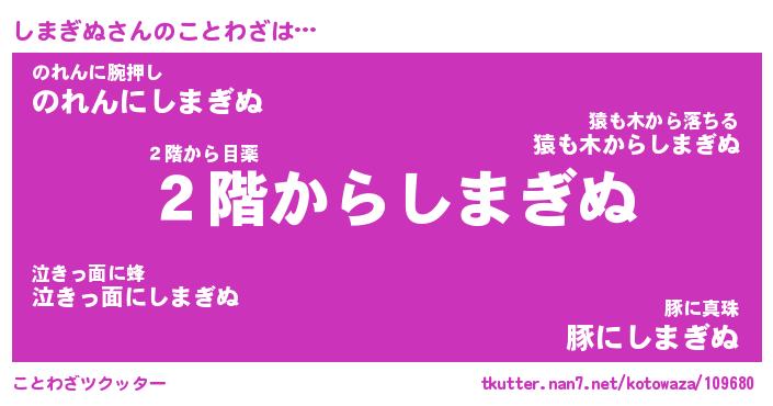 | 胡散臭い通販商品みたいなあだ名 | 『必ず成功するブレスレット…その名も「しまぎぬ」』 |