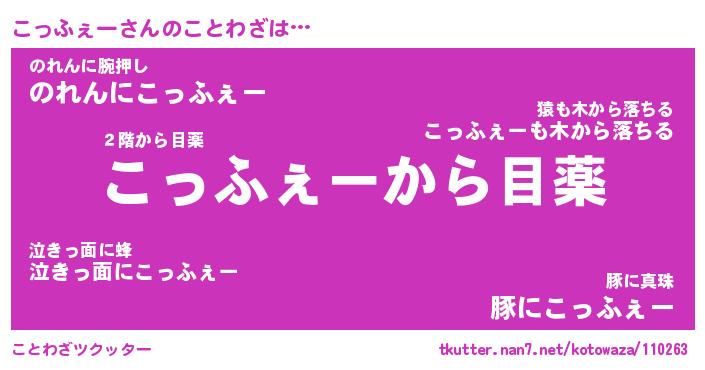 | ヒーロー風カッコイイあだ名 | 『スーパーコッフェー』『魔戒騎士コッ』 |