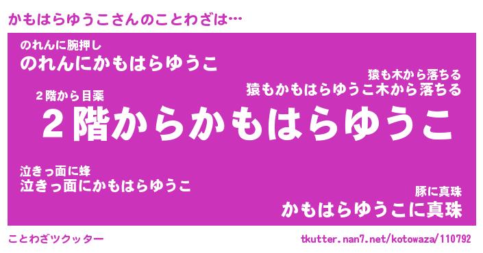 | ヒーロー風カッコイイあだ名 | 『スーパーカモハラユウコ』 |