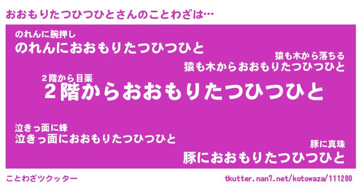 | 男性向けラノベタイトル風あだ名 | 『おおもりたつひつひとの憂鬱』 |