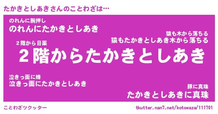 | 恥ずかしいあだ名 | 『プリティーたかきとしあき』『たかちん』 |
