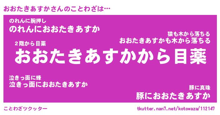 | 恥ずかしいあだ名 | 『プリティーおおたきあすか』『おおちん』 |
