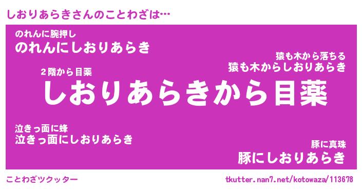 | 恥ずかしいあだ名 | 『プリティーしおりあらき』『しおっちょ』 |