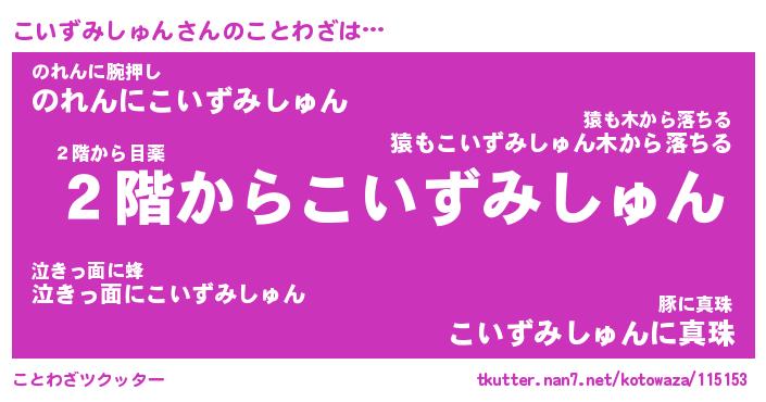 | 男性向けラノベタイトル風あだ名 | 『こいずみしゅんの憂鬱』 |