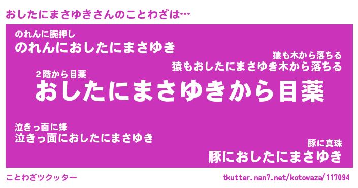 | 女子向けラノベタイトル風あだ名 | 『おしたにまさゆき姫と円卓の騎士』 |