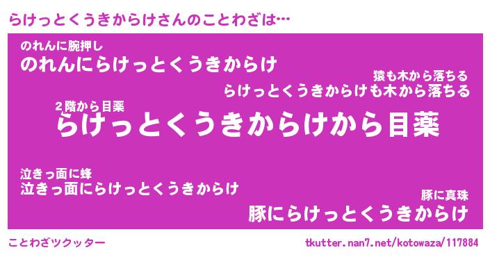 | ツイッター | らけっとくうきからけさんのツイッターID『namakemono_idle』 |