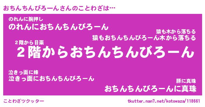| 男性向けラノベタイトル風あだ名 | 『おちんちんびろーんの憂鬱』 |