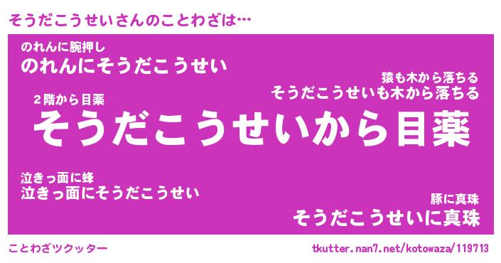 | ツイッター | そうだこうせいさんのツイッターID『dendenmushi_man』 |