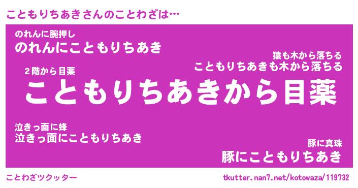 | 伝説のあだ名 | 『不死鳥のスナイパーこともりちあき』 |