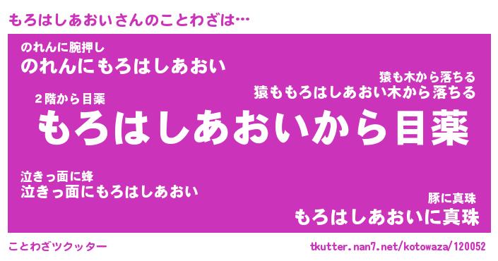 | 2回繰り返すあだ名 | 『もろもろ』『ももろろ』『ぶつぶつ』 |