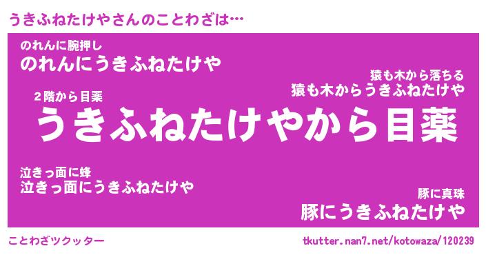 | 女子向けラノベタイトル風あだ名 | 『誰かこのうきふねたけやを説明してください! ~契約から始まるウェディング~』 |