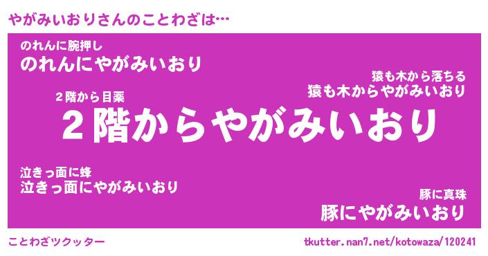 | 欧米人風あだ名 | 『マイケルやがみいおり』 |