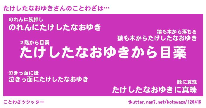 | ヘコむあだ名 | 『たけにゅー』『なまこ酢』『たけお』 |