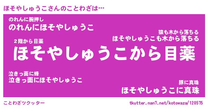 | 胡散臭い通販商品みたいなあだ名 | 『モテモテ間違いなしブレスレット…その名も「ほそやしゅうこ」』 |