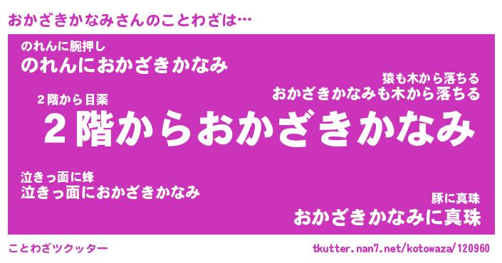 | 胡散臭い通販商品みたいなあだ名 | 『必ず成功するブレスレット…その名も「おかざきかなみ」』 |