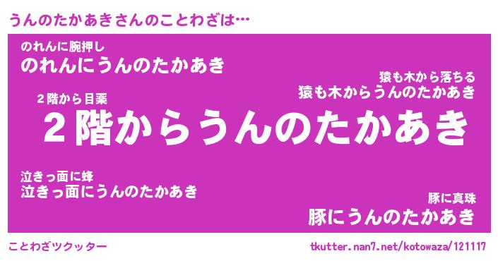 | 男性向けラノベタイトル風あだ名 | 『うんのたかあきの憂鬱』 |