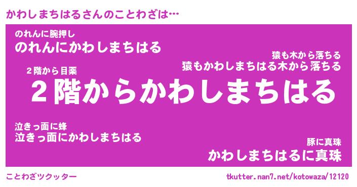 | 胡散臭い通販商品みたいなあだ名 | 『必ず成功する霊験あらたかなお札…その名も「かわしまちはる」』 |