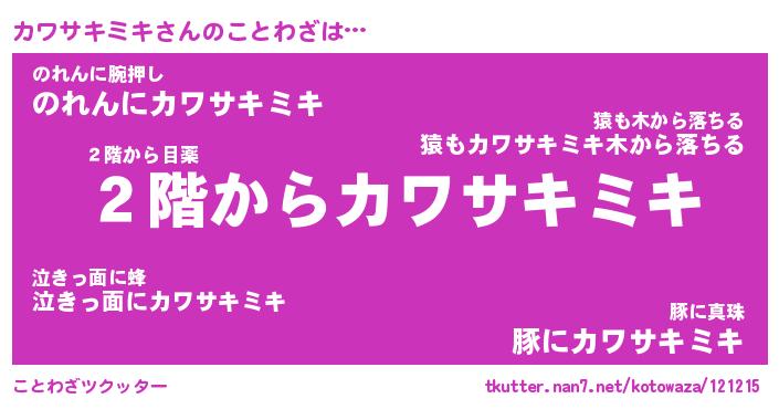| ヒーロー風カッコイイあだ名 | 『スーパーカワサキミキ』『黄金騎士カワ』 |