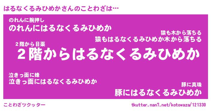 | 胡散臭い通販商品みたいなあだ名 | 『必ず成功する霊験あらたかなお札…その名も「はるなくるみひめか」』 |