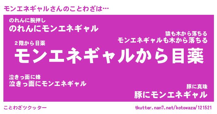 | 胡散臭い通販商品みたいなあだ名 | 『モテモテ間違いなし霊験あらたかなお札…その名も「モンエネギャル」』 |
