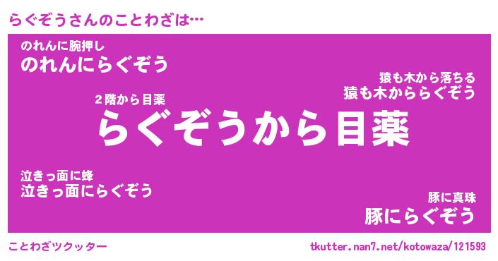 | 胡散臭い通販商品みたいなあだ名 | 『億万長者になれるブレスレット…その名も「らぐぞう」』 |