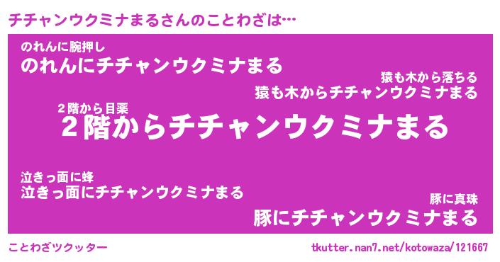 | 男性向けラノベタイトル風あだ名 | 『チチャンウクミナまるの憂鬱』 |