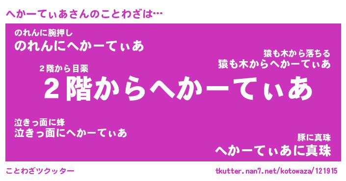 | 2回繰り返すあだ名 | 『へかへか』『へへかか』『ぬれぬれ』 |